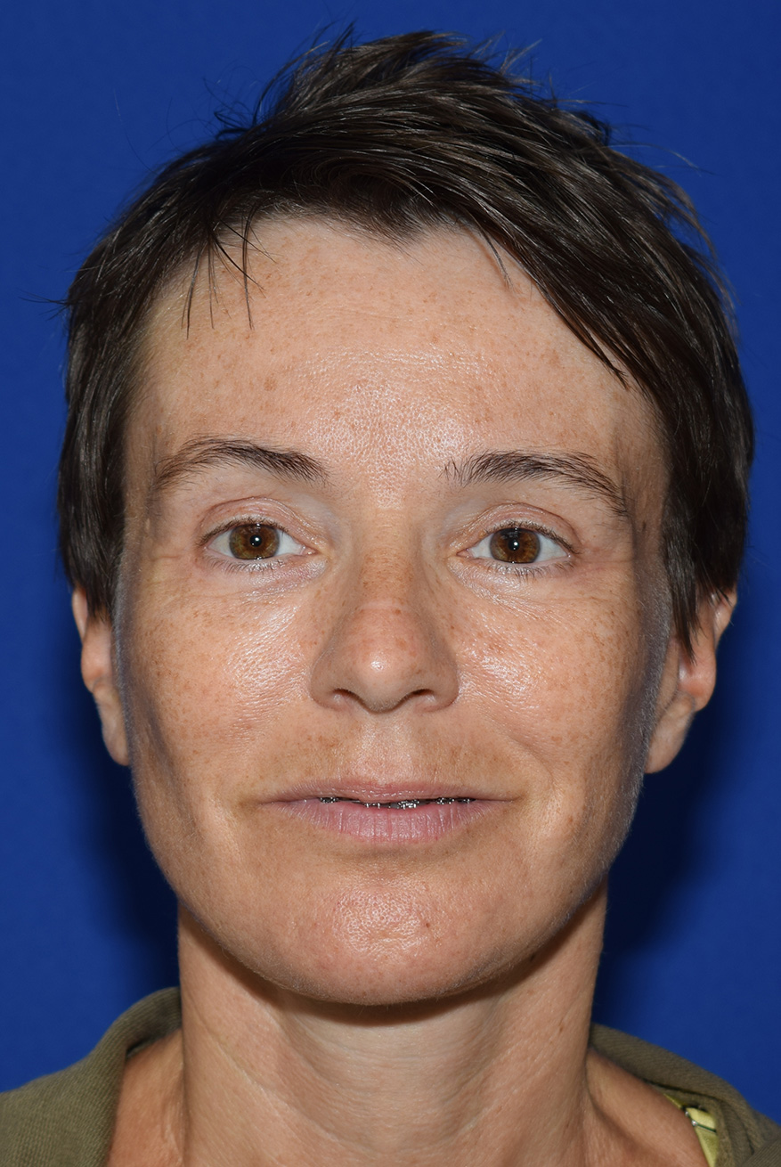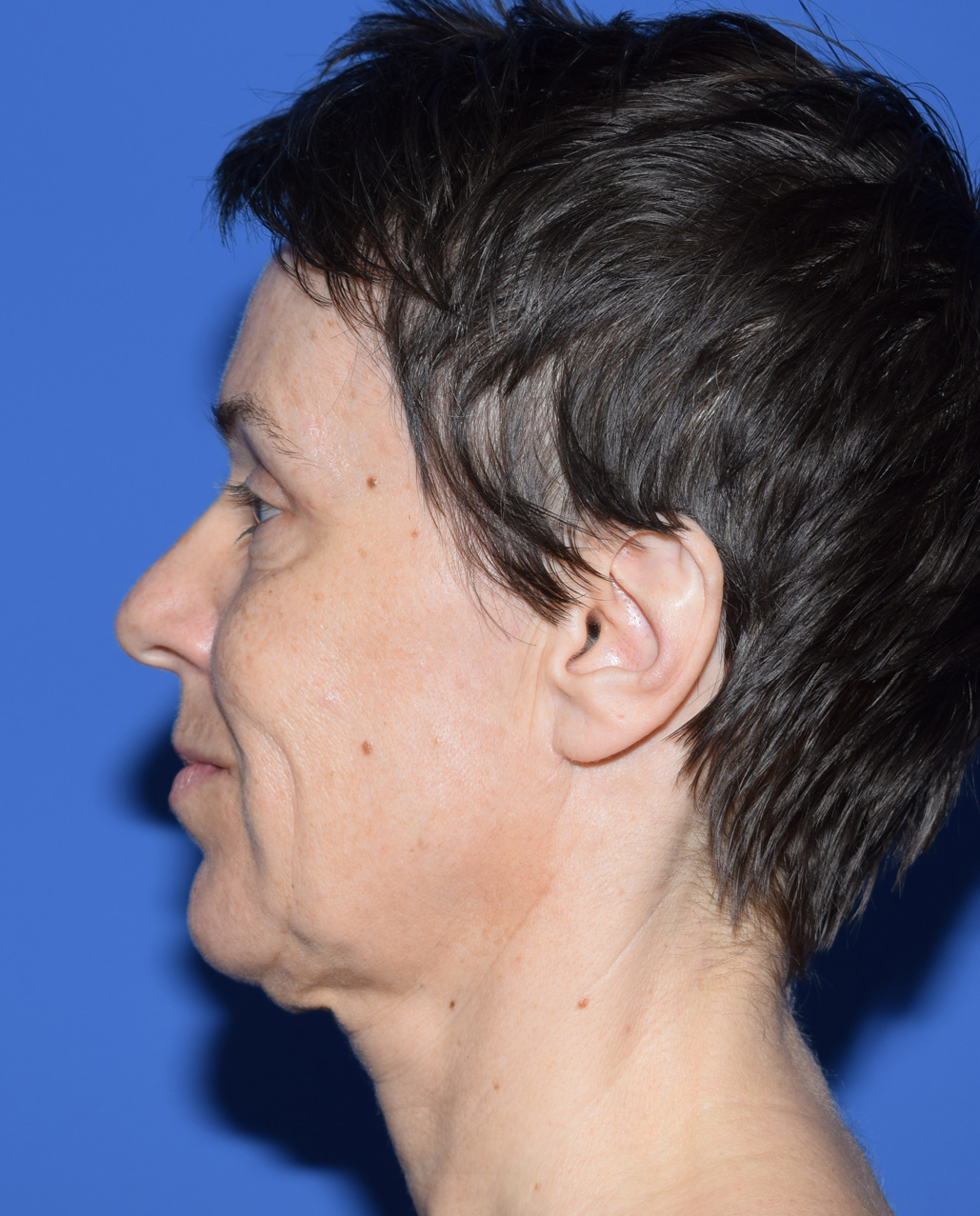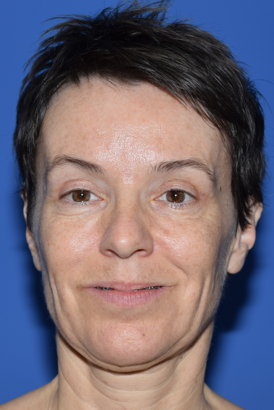 The patient was affected by excess skin on the lower eyelids, sagging in the lower cheek area, skin folds on the chin, and tissue sagging on the neck.